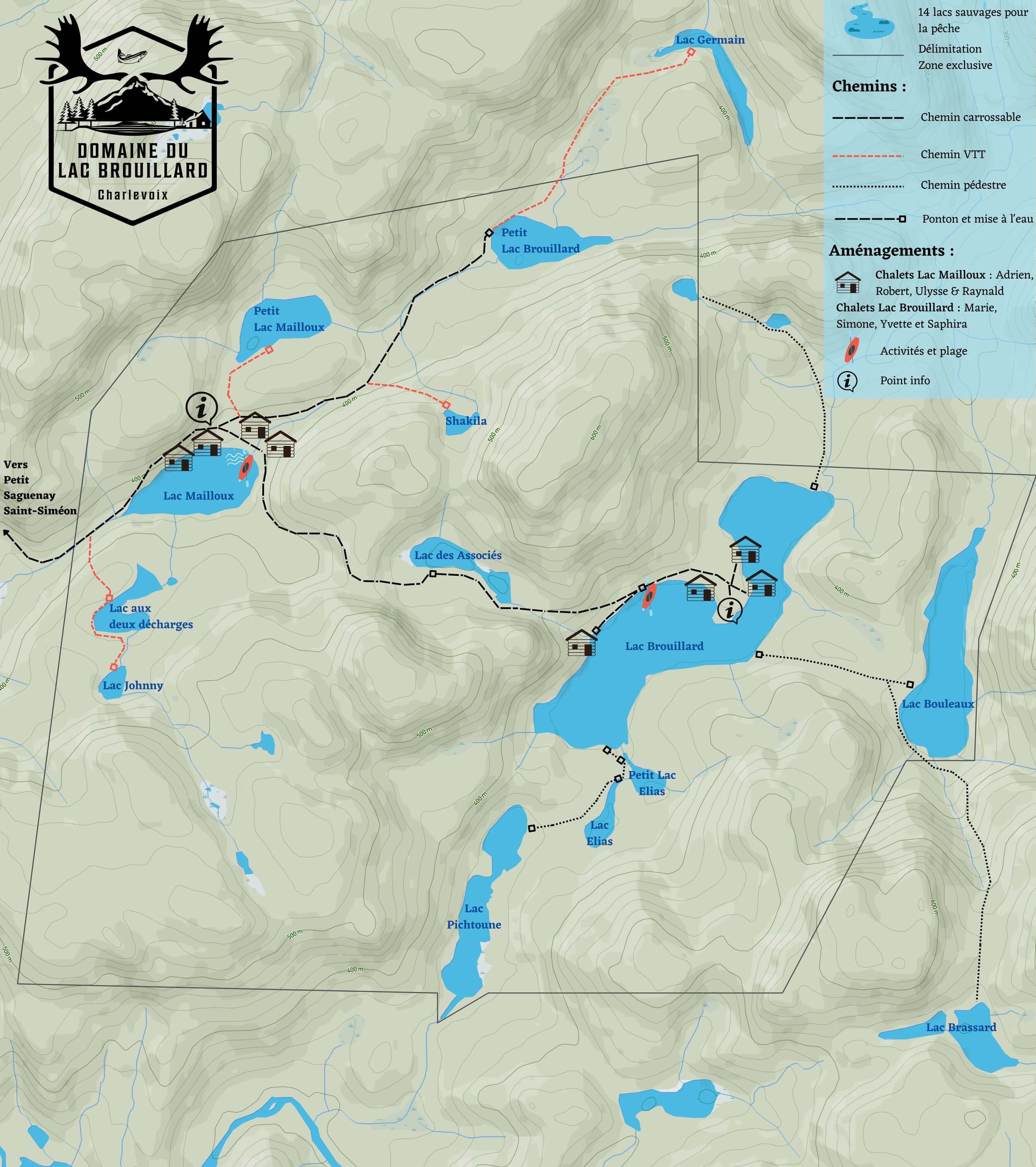 Situé au cœur de 1 500 hectares de nature sauvage, ponctués de 14 lacs privés et bordés par les montagnes de Charlevoix, le Domaine du Lac Brouillard incarne un projet d’envergure : faire renaître une pourvoirie traditionnelle en un véritable centre de villégiature quatre saisons, écoresponsable et haut de gamme.